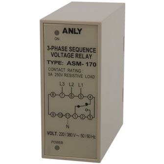Prev Next Protective Relay Voltage Relay ASM-170 3-PHASE SEQUENCE VOLTAGE RELAY Add to inquiry Inquiry list Description Wiring and timing diagrams Overall dimensions or other Download Only operational with correct power source voltage and phase sequence Suitable for main power source and motor starter circuit to prevent damage from insufficient phase or phase reversal Out-of-phase detection while the motor operating* Note: "*" indicates not applicable to APR-3 APR-3/-3S/ASV-4/ASM-170 Catalogue