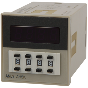 Prev Next Counter Counter AH5K PRESET COUNTER Add to inquiry Inquiry list Description Wiring and timing diagrams Overall dimensions or other Download Proximity and photoelectric switch compatible Seven-segment-display for clear display and effective monitoring Protection against power surge and high frequency interference Input signal - active-low or active-high input contact (1+4) Available on Count Up or Count Down model Reset method - shut-off reset or shorting contact (1+3) instantaneous reset Memory switch allows users to enable or disable permanent memory function * Manual reset button on faceplate * UL, C-UL recognized and CE certified * Note: *indicates applicable to AH5CK series only AH5CK/AH5K Catalogue