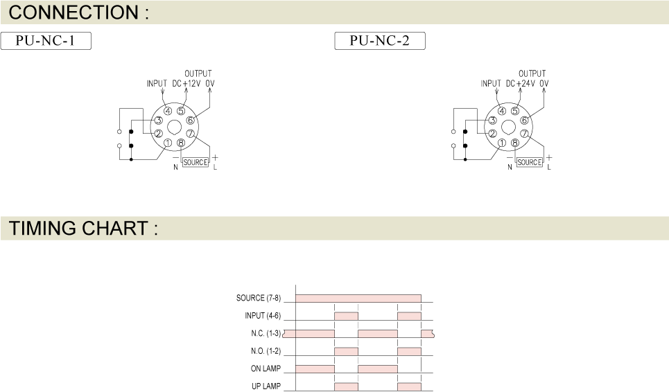 Prev Control Relay Controller Unit PU-NC-□ CONTROLLER UNIT Add to inquiry Inquiry list Description Wiring and timing diagrams Overall dimensions or other Download Wide operating voltage range in a single unit, from AC/DC 100V~240V Proximity and photoelectric swithes power supply controller Use isolated swiching power supply with stabilized, output source is DC 12V 250mA or DC 24V 150mA 1C (SPDT) output contact with 5A capacity PU-NC Catalouge