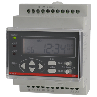 Prev Next Timer Programmable Timer ET7-1 TWIN OUTPUT WEEKLY PROGRAMMABLE TIMER Add to inquiry Inquiry list Description Wiring and timing diagrams Overall dimensions or other Download Weekly programmable timer Two independent output for ON/OFF pulse 160 different ON/OFF pulse timming settings per day Different weekday combinations assignment for each task EEPROM program memory for battery independence Built-in Lithium battery prevent power outage up to one year (for time base) Crystal oscillator for extreme accuracy Separate twin timer feature for ON-time or ON-time-OFF-time countdown Daylight-saving-time function, Max 99 weeks Backlit LCD for easy viewing Each timers time base can be synchronous by RS485 ET7-1 Catalogue ET7-1 Users Manual