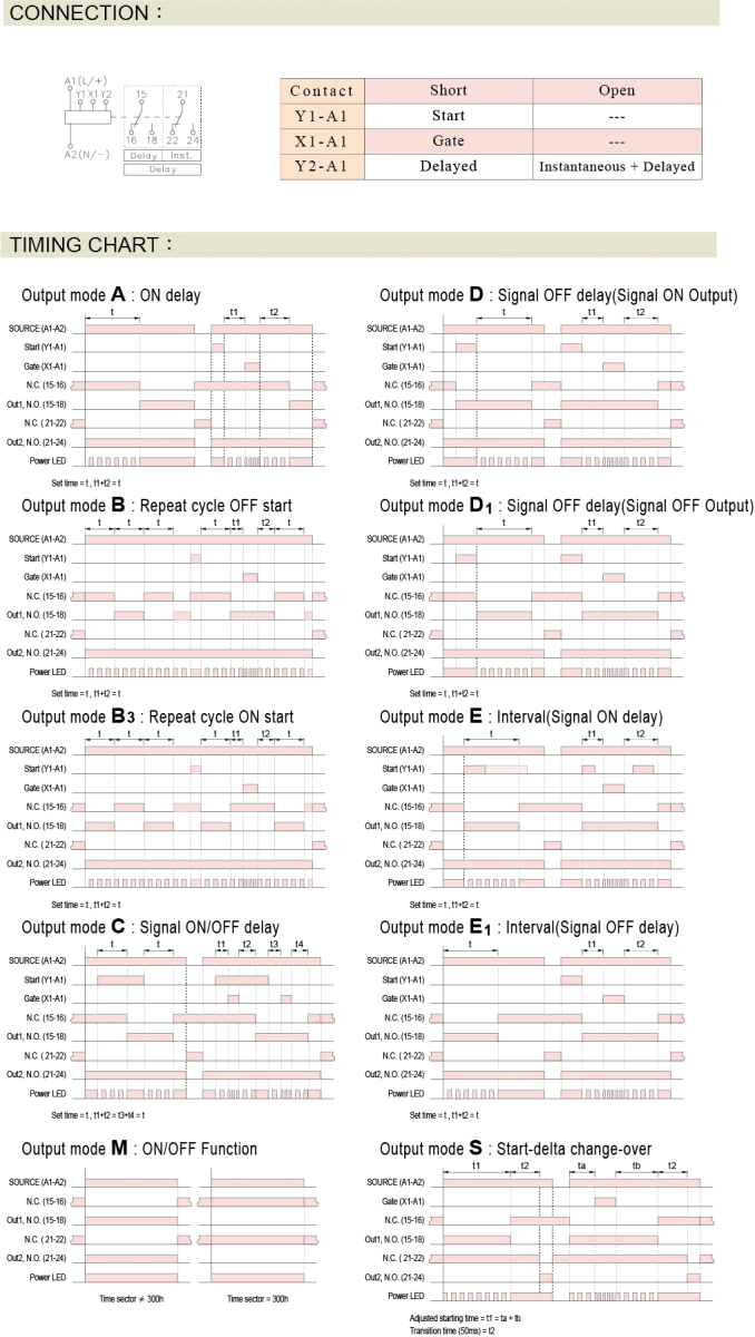 Prev Next Timer Analogue Timer ET2-31 MULTI-FUNCTION ANALOGUE TIMER Add to inquiry Inquiry list Description Wiring and timing diagrams Overall dimensions or other Download Wide operating voltage range in a single unit, AC/DC 24V~240V 10 field-selectable output modes for various applications 10 field-selectable time range, from 1 second to 300 hour Includes 2 SPDT output contacts 22.5 mm thin body design X1, Y1, Y2 contact for mode control ET2-31 Catalogue ET2-31 Users Manual