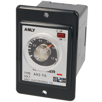 Prev Next Timer Analogue Timer AH2 MULTI-RANGE ANALOGUE TIMER Add to inquiry Inquiry list Description Wiring and timing diagrams Overall dimensions or other Download Customized CMOS IC for low power consumption, high operation stability and extreme timing accuracy Large transparent knob for easy adjustment and monitoring 15 different time ranges available, from 0.1sec to 24hour 5(A, B, C, D, E) timing series available* Each timing series has 4 time ranges, selectable via DIP switch* CE certified Note: "*" indicates applicable to AH2 multi-range series only AH2 Catalogue